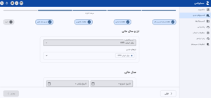 - اگر عنوان سال مالی را خودتان تغییر ندهید، با انتخاب تاریخها معمولاً خودکار پر میشود.